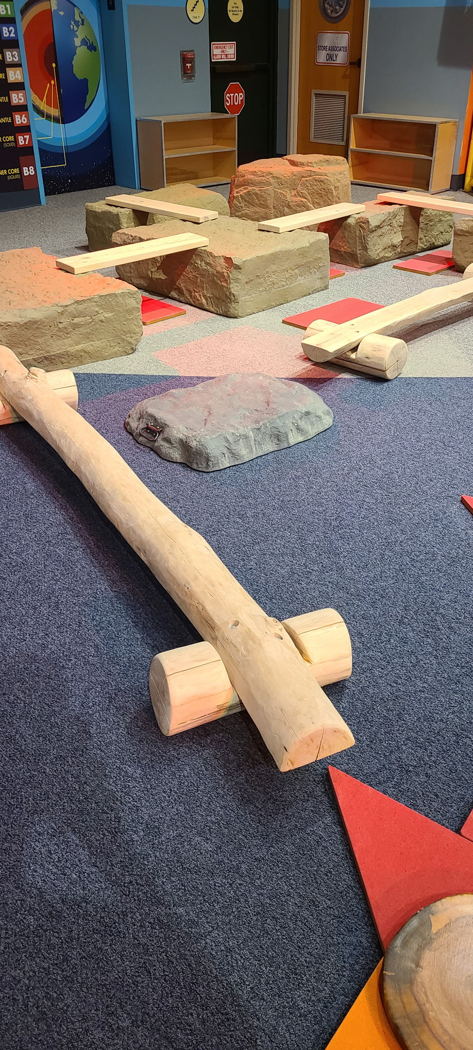 Anji Play and Floor is Lava is an exhibit I helped bring to life, based on a childhood philosophy developed in Anji County, China, that encourages self-directed exploration. I designed the boxes in AutoCAD and cut the parts on a CNC router before hand-fabricating and assembling the pieces. The three large plywood boxes featured a variety of shapes and sized cutouts, inviting kids to crawl through, climb on, and rearrange them however they liked. We also built ramps with eco flooring, making it easier for kids to climb and stay steady as they moved around. To complete the experience, we added Floor is Lava elements — stepping stones, crossbeams, and a small climbing wall — creating an open-ended play space where kids could build their own adventures.